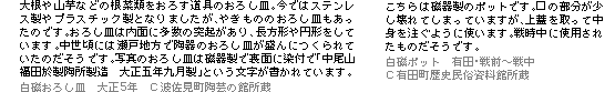| 台所では食器をはじめ陶磁器製品が、今も大活躍しています。ここではちょっとおもしろい陶磁器の台所用品をご紹介します。 | ||||||