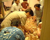 | 講座の第六回目。今日は製作工程の中の「成形」最後の日です。まずは、手びねり作品の素焼きが終了していたので、それを収納し、その後、前回ろくろで作った作品の「削り」作業を行います。 <LESSON13―素焼きした作品を収納―> |