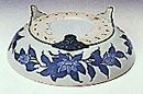 | 染付による単色であるが、鷺を白く塗り残すことによって、白をもう一つの色として演出している。裏面は幅の広い蛇の目高台であり、高台縁には如意頭形の三足がつく。三足の畳付は施釉してあるため、浮かせて焼いている。蛇の目の部分は無釉であり、浮かせるために用いた窯道具の小さな熔着痕が外側に20個、内側には等間隔ではない熔着痕が14個残っている。裏面三方に木蓮かと思われる折枝文を描く。 |
