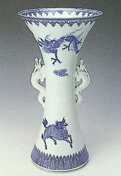 染付雲龍麒麟文耳付花生