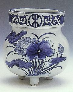 >> 染付蓮文三足付香炉