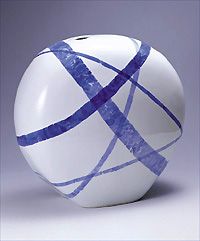 | 教員生活28年。これまで多くの生徒と接してきた吉田さんから受ける印象は、ひたむきに焼き物と対面する職人の雰囲気とは異質だ。やはり、教師として見た方がしっくりくる。 福岡市出身。佐賀大学教育学部で美術工芸を専攻した。そこで焼き物の奥深い世界にひかれ、卒業後、松江市の民芸作家船木研児の元で陶器の修行を積んだ。「大学を出たばかりで陶器、磁器、特にこだわりはなかったんです」。2年後、教師として有田工業に呼ばれる。 赴任してすぐ、生徒の指導の傍らで制作に取り組んだ。初めは校内の作業場を借りていたが10年後、県陶芸協会入会の条件を満たすためにアトリエと窯を購入。「一人で集中する場所が欲しかったし、教える身からも自分の技術を磨きたかった」。 学校があるときは自分の制作は行わない。秋の日展、春の現代工芸展に標準を合わせた夏、冬休みだけに集中する。窯入れは春と夏に1回ずつ、大作は1年間で4つだけ。 夏はずっと、「サウナのような室内」にこもり、朝から晩まで黙々と制作に没頭する。武雄市の自宅から離れた、卸団地や県窯業技術センターなどが集まる静かな場所のアトリエには「家族もあまり訪れない」という。 教師を辞めて、焼き物作りに専念しようと思わなかったのだろうか。 「何度かありましたが、自分で経営までやるのは性に合わない。それに教え子の上達を見るたびに、『辞めるのは簡単』と思って辞められなくなる」。今は教え子たちに、岩永範彦さんら多くのライバルがいる。 吉田さんの磁器は一貫して「海」がモチーフ。和紙染め技法を用い、数種類の青と色の濃淡で、ぶつかり合う波や照り返しなどを表現する。 「高校まで(福岡市)和白の外海そばに住んでいた。見えない所に住んでみて、何となく海が懐かしくなるんです」。制作に行き詰まりを感じると、違うテーマに取り組もうかと迷ってしまう。そんな時、古里の海に似た唐津や西海橋へドライブし、創作のイメージをかき立てる。 ここ2、3年は有明海に足が向いている。「変化に富んだ有明海の、特に夕日が映える干潮時にひかれるんです」。数年後には外海ではなく、有明海をテーマにした作品に取り組む予定だ。 イメージをつくり上げてから成形する。染付は、青と白のバランスに注意する。「余白が生きるかどうか。それができないとただの絵、模様になり、焼き物が死んでしまう」。作品を絵画的に見立てる吉田さんのこだわりだろう。 教職も4年後に定年を迎える。生徒と向き合う時間を、そのまま物作りと向き合う時間に移すという。「食器など新しいことにも取り組みたい。作風を変えるかどうか、具体的なことはやめてから考えますよ」。その言葉からも、柔軟に、したたかに焼き物と向き合ってきた姿勢が感じられる。 |